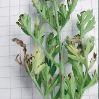 Síntomas: pequeñas manchas oscuras bordeadas por un halo amarillento sobre las hojas más viejas. Las hojuelas se encogen y mueren. Los pecíolos pueden igualmente, ser atacados, entonces éstos presentan unas necrosis alargadas y claras.