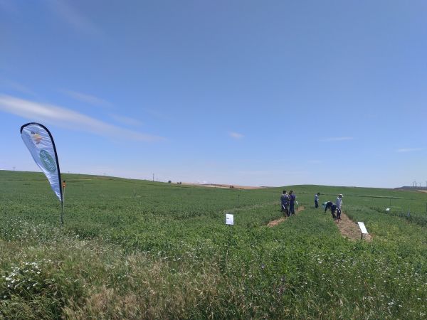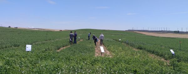 La visita pudo recorrer los 600 m2 de ensayo que mostraba hasta 11 variedades de guisante para Indsutria.